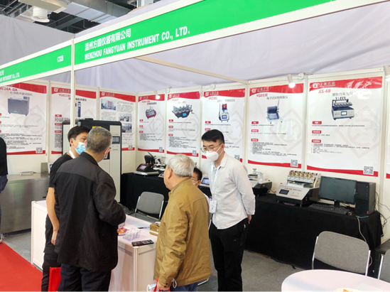 溫州方圓儀器有限公司如期參展,短短三天時間接待參展觀眾300多人,接到20多個有效詢價訂單,方圓公司展品日曬儀、強力機、起球儀等儀器工藝考究、控制精確、質量穩定受到廣大用戶一致好評。